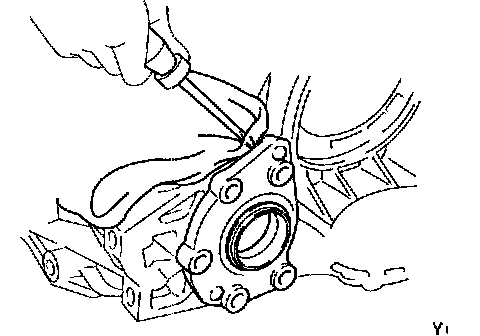 b. Using a large screwdriver, remove the LH bearing retainer.