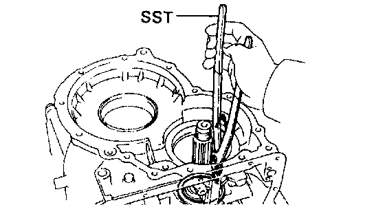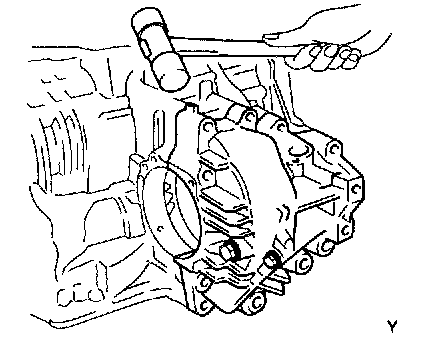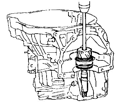 b. Install the bar into the case hole to drive out the drive pinion.