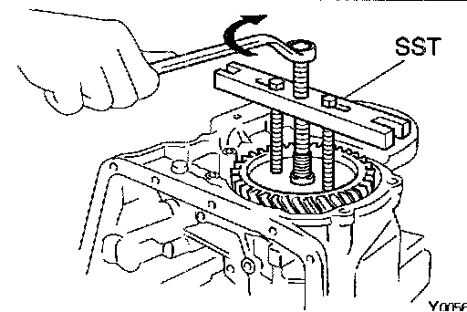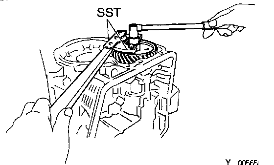 b. Using SST to hold the gear, remove the nut.