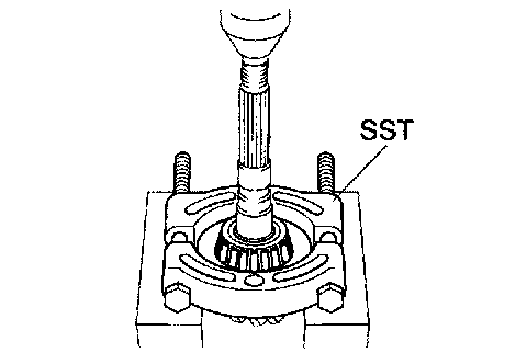 e. Using SST, press out the bearing.