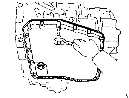 NOTICE: Do not turn the transaxle over as this will contaminate the valve body with the foreign materials in the bottom of the oil pan.