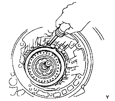 b. Using a filler gauge, check the pack clearance of the first and reverse brake.