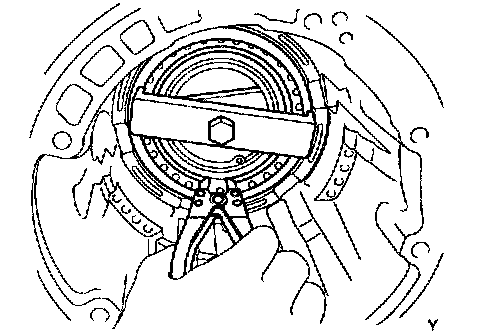 28. REMOVE SECOND COAST BRAKE BANDa. Push the pin with a small screwdriver and remove it from the bolt hole of the oil pump mounting.