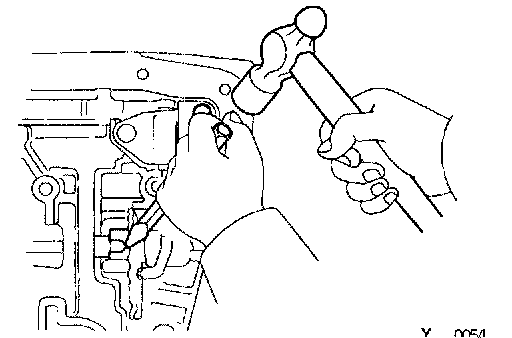 b. Tap on the circumference of the overdrive case with a plastic hammer to remove the overdrive case and gasket.