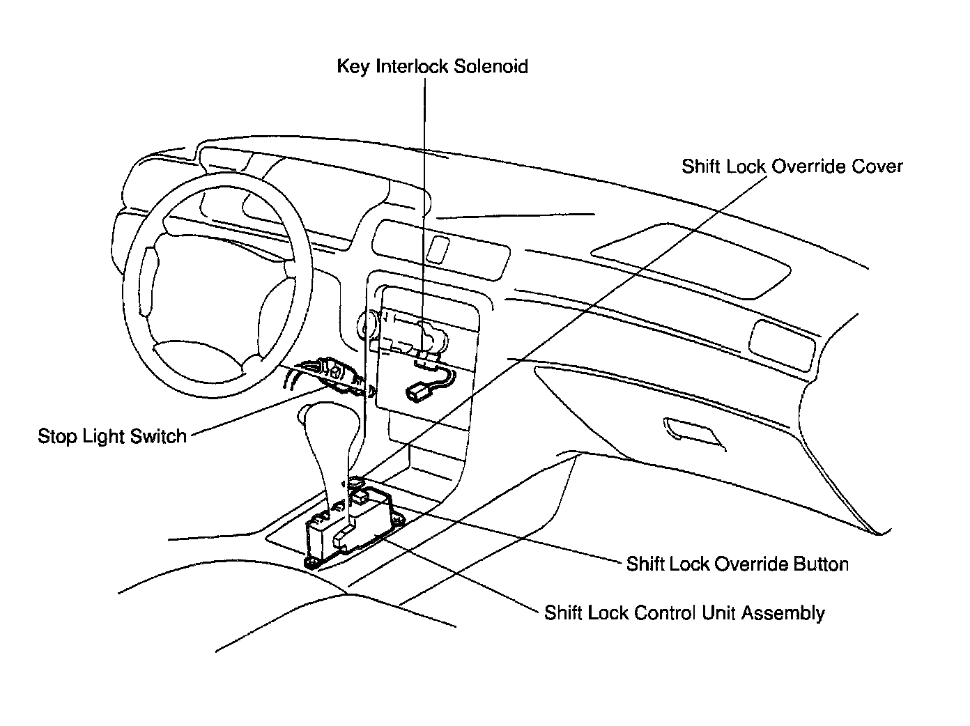 HINT: Do not disconnect the shift lock control unit assembly connector.