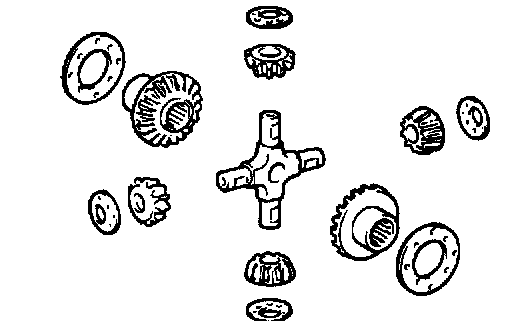 e. Remove the 2 differential side gears, side gear thrust washers, 4 differential pinions and pinion thrust washers from the differential left case.