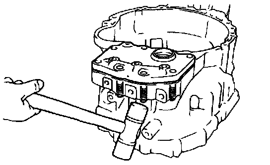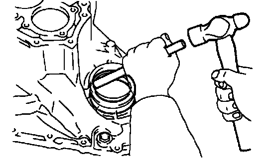c. Using a brass bar and hammer, drive out the bearing outer race lightly and evenly.