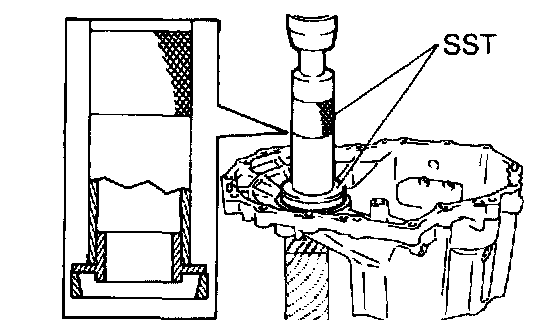 e. Using SST and a press, install a new tapered roller bearing outer race.