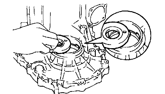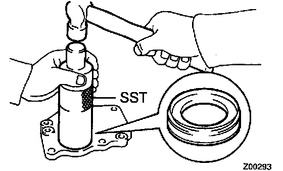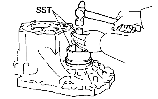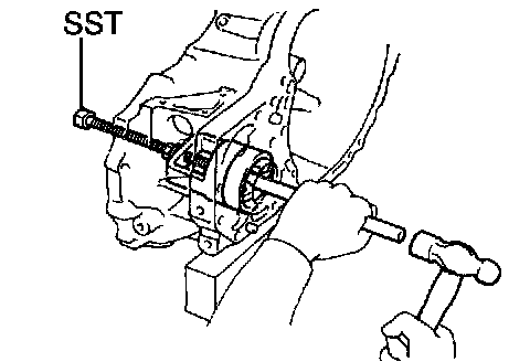 d. Using SST, a brass bar and hammer, remove the tapered roller bearing outer race.