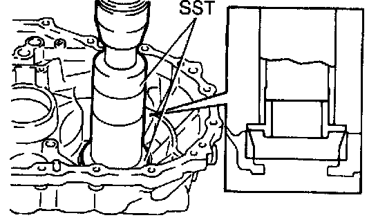 f. Using SST and a press, install a new tapered roller bearing outer race.