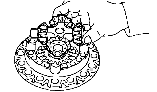e. Install the side gear and spider with the 4 pinions to the right side of the differential case. Check the side gear backlash.