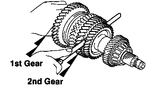 d. Using a feeler gauge, measure the clearance between the synchronizer ring back and gear spline end.