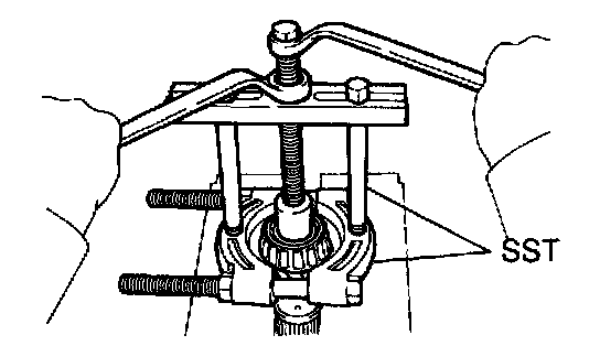 Using SST, remove the output shaft front bearing.