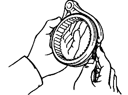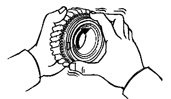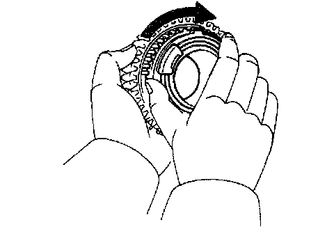 b. Check the braking effect of the synchronizer ring. Turn the synchronizer ring in one direction while pushing it to the gear cone. Check that the ring locks.