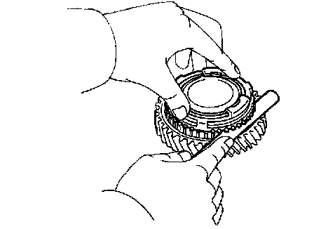 If the braking effect is insufficient, apply a small amount of the fine lapping compound between the synchronizer ring and gear cone. Lightly rub the synchronizer ring and gear cone together.