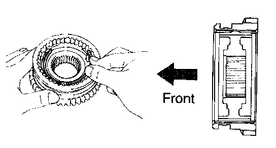 c. Using a feeler gauge, measure the clearance between the synchronizer ring back and gear spline end.