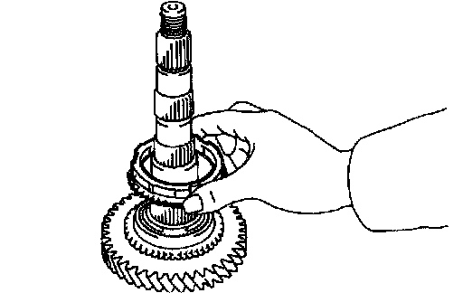 c. Place the synchronizer ring (for the 1st gear) on the gear and align the ring slots with the shifting keys.