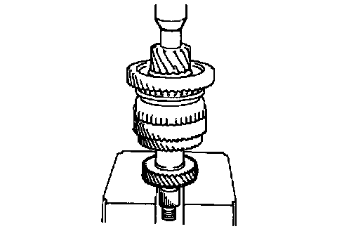 a. Using a press, remove the bearing and 4th driven gear.