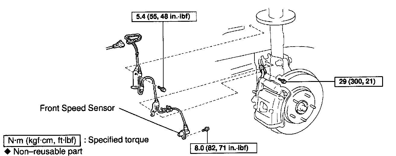 (c) Install the speed sensor harness clamp, flexible hose and bolt to the shock absorber.