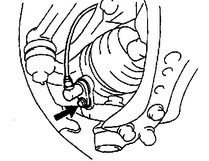 (a) Remove the bolt, flexible hose and speed sensor harness clamp from the shock absorber.