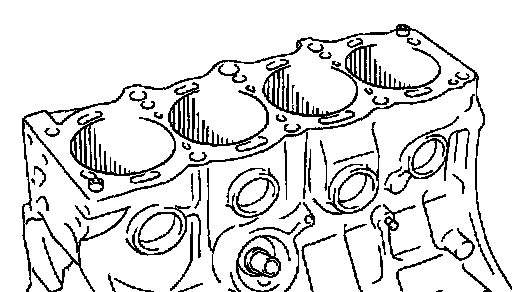b. Visually check the cylinder for vertical scratches. If deep scratches are present, rebore all the 4 cylinders and replace all the 4 pistons. If necessary, replace the cylinder block.