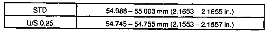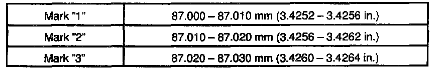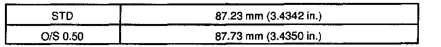 O/S 0.50 piston diameter: 87.350 - 87.380 mm (3.4390 - 3.4402 inch)