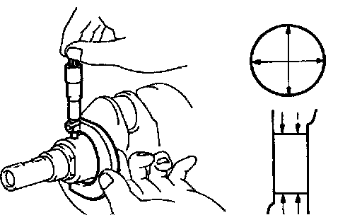 2. Check each main journal and crank pin for taper and out-of-round as shown.