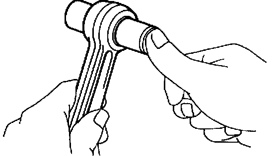 e. Check the piston pin fit at normal room temperature. Coat the piston pin with engine oil, and push it into the connecting rod with your thumb.