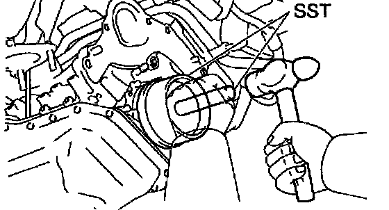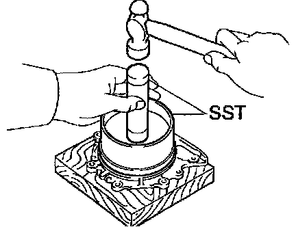 4. Using SST and a hammer, tap in the oil seal until its surface is flush with the oil pump body edge.