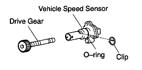 b. Remove the clip and speedometer driven gear from the vehicle speed sensor.