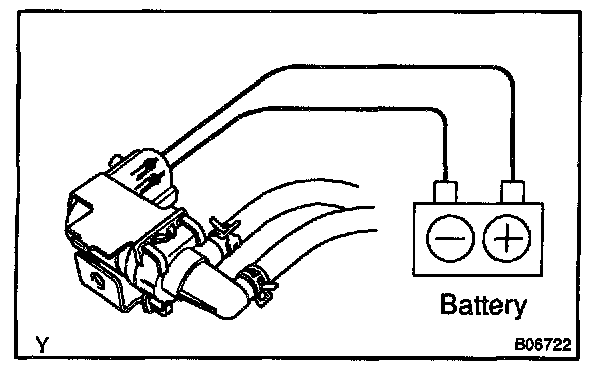 2. Connect the positive (+) and negative (-) leads from the battery to the VSV terminals for the EVAP.