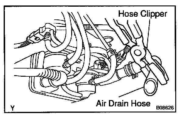 1. Close off the air drain hose at the marked position of the canister with a hose clipper or similar instrument.