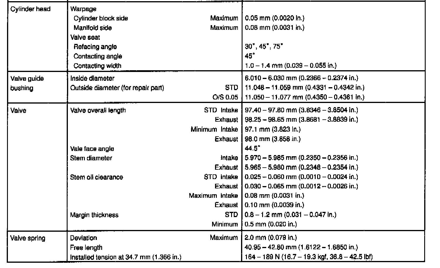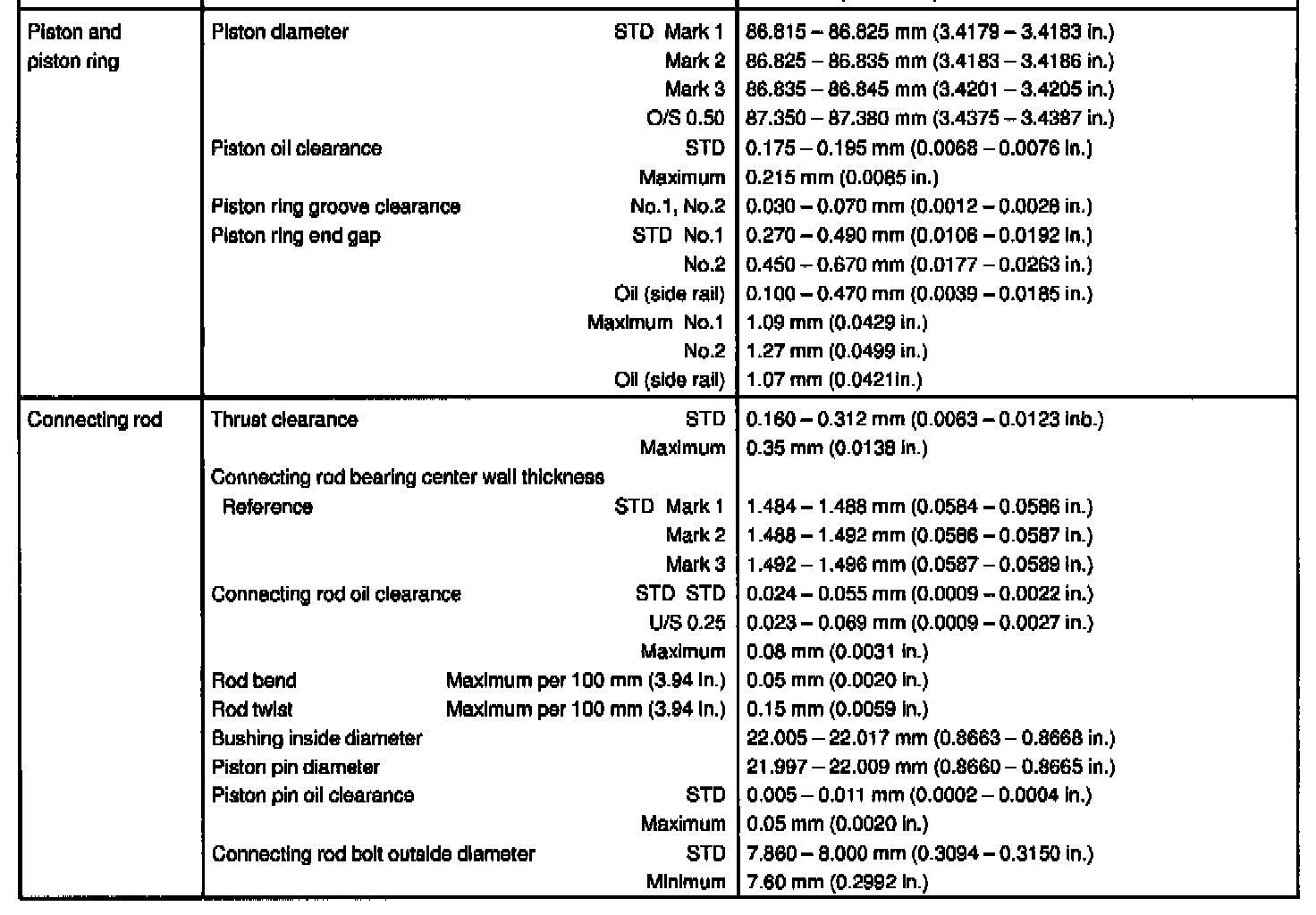 5S-FE Engine Mechanical Data: