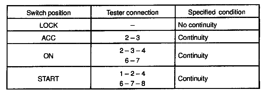INSPECTION1. INSPECT IGNITION SWITCH CONTINUITY