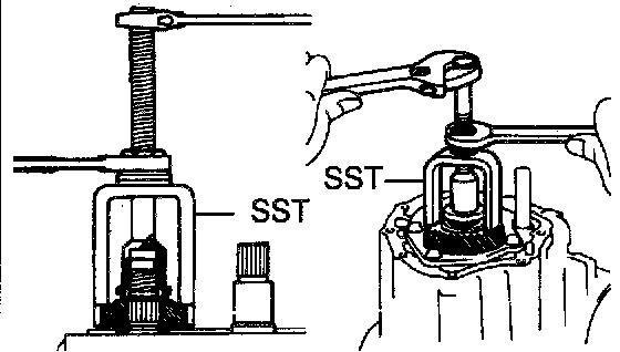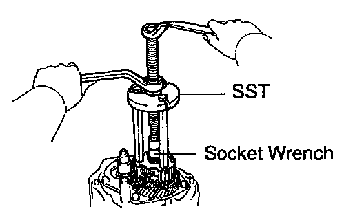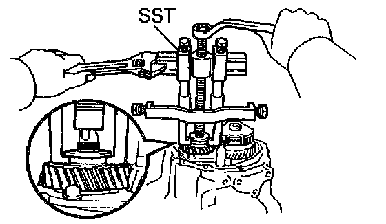 b. Using SST and a socket wrench, remove the No.3 clutch hub with the synchronizer ring.