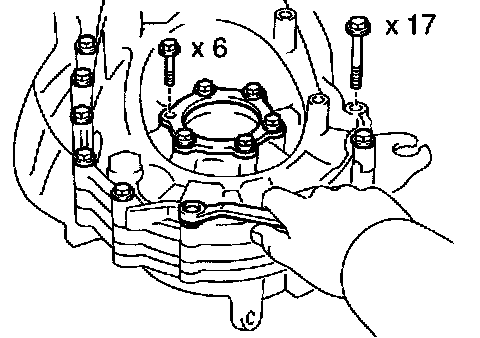 b. Using a plastic hammer, tap the transmission case and remove it.