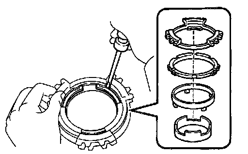 HINT: Wrap vinyl tape on the screwdriver to prevent damaging the synchronizer ring.