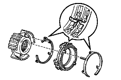 c. Install the No. 5 synchronizer rings with the key springs to the No.3 clutch hub.