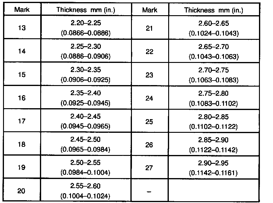 Maximum clearance: 0.070 mm (0.0028 inch)