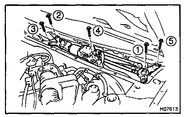 a. Install the wiper link assembly with the 5 bolts to the body panel.