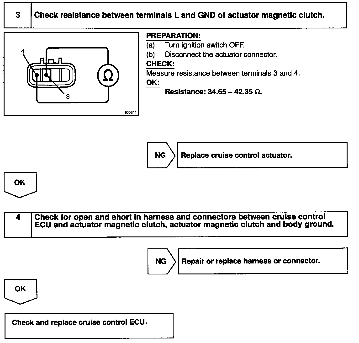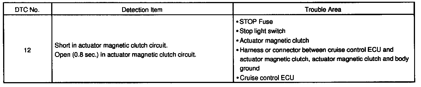 This circuit turns on the magnetic clutch inside the actuator during cruise control operation according to the signal from the ECU. If a malfunction occurs in the actuator or speed sensor, etc. during cruise control operation, the rotor shaft between the motor and control plate is released.