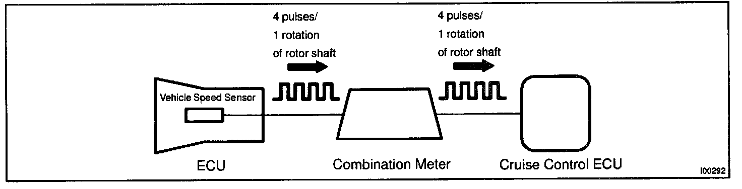 For each rotation of the shaft, the vehicle speed sensor sends a 4-pulse signal through the combination meter to the cruise control ECU (See the following installation).