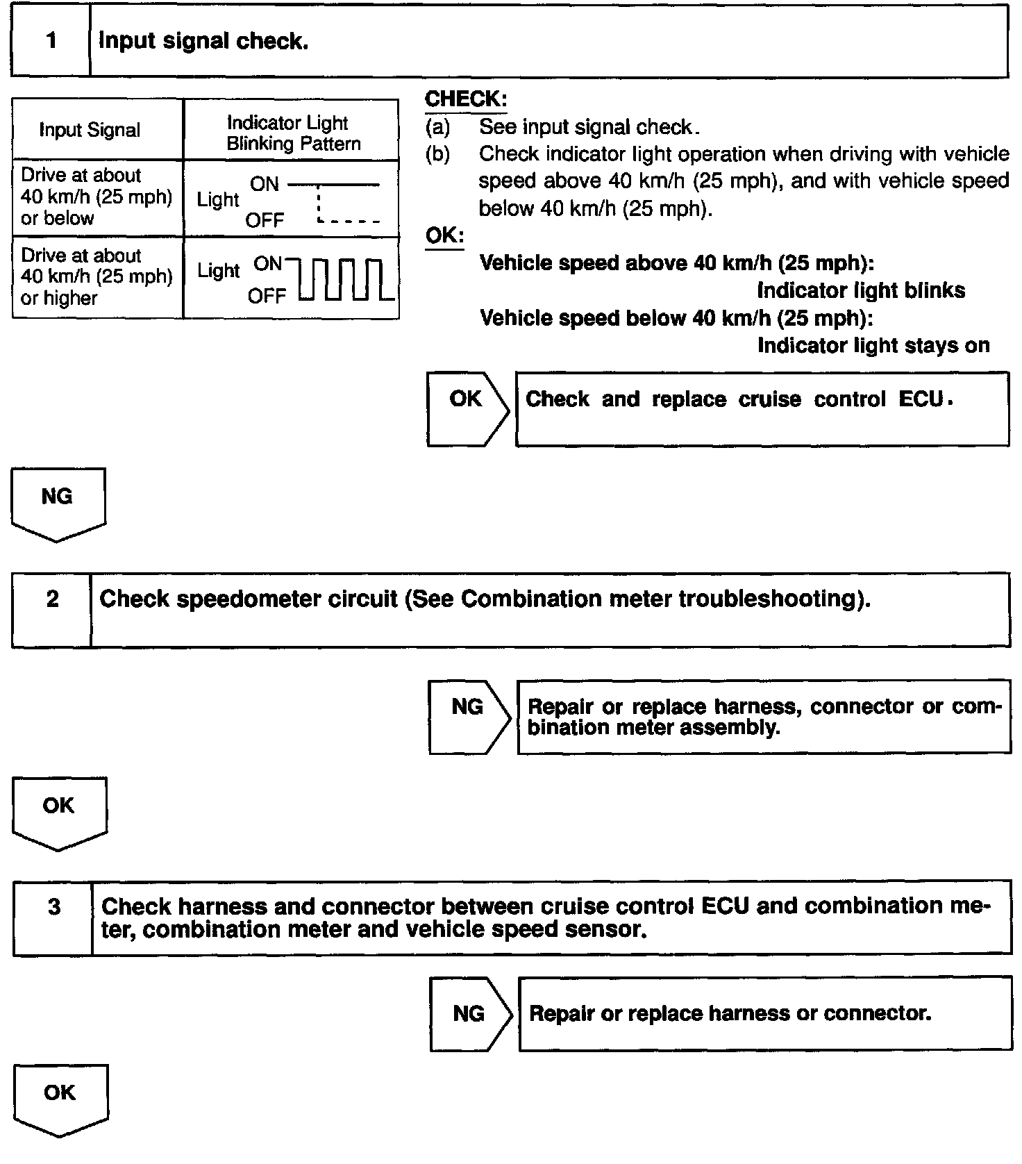 This signal is converted inside the combination meter and sent as a 4-pulse signal to the cruise control ECU.