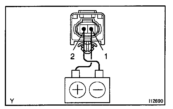 Connect the positive (+) lead from the ohmmeter to terminal 1 and the negative (-) lead to terminal 2, and measure resistance of approx. 1 kohm.