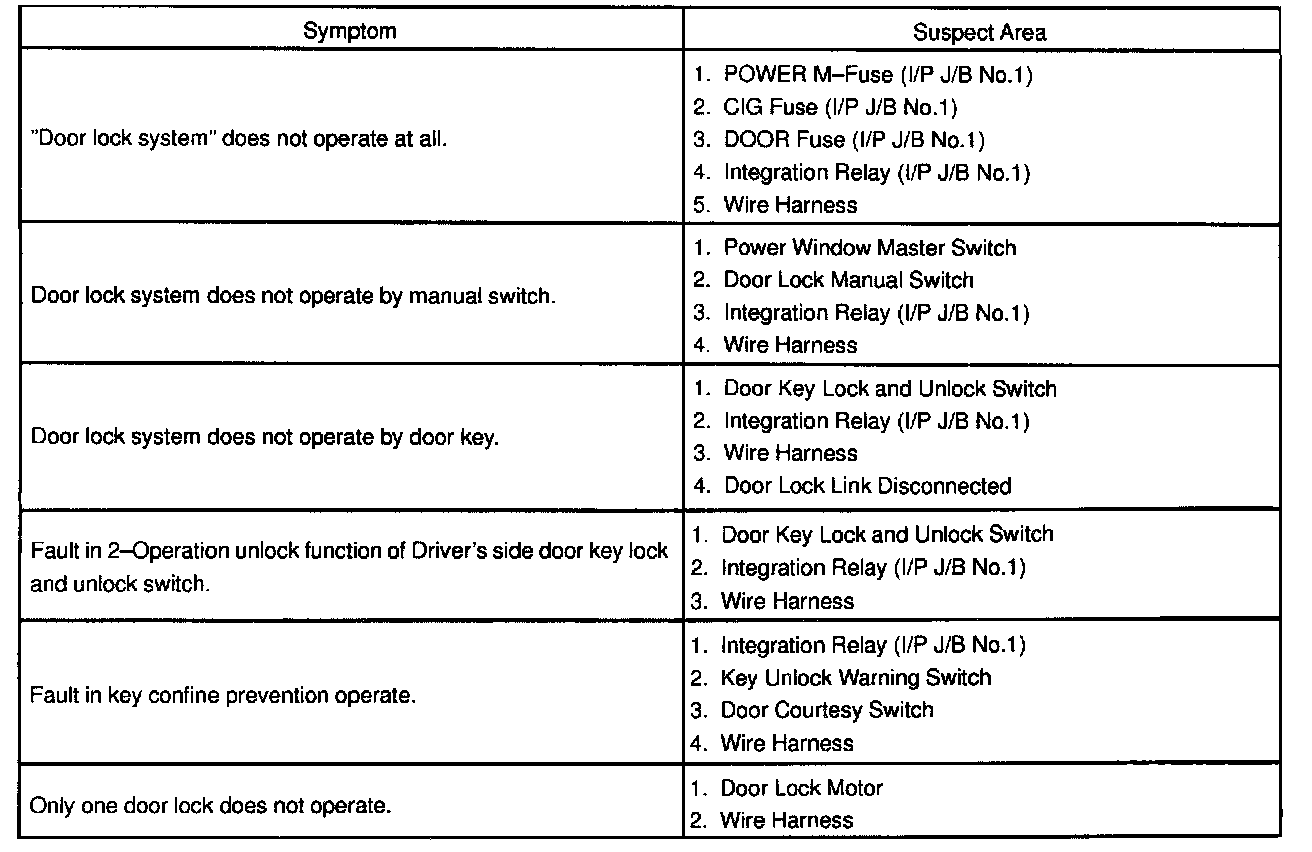 Problem Symptoms Table - Power Door Lock Control System: