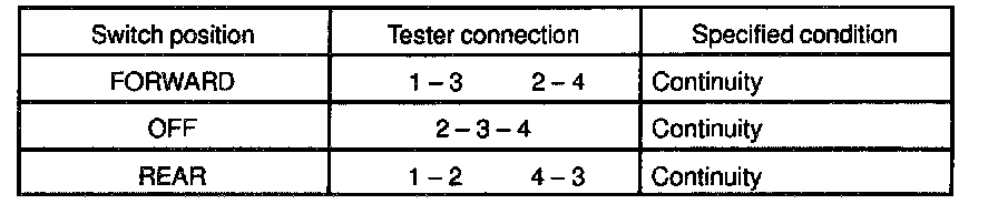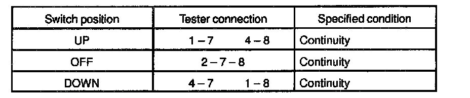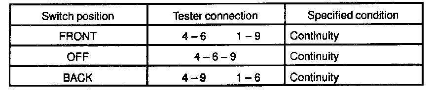If continuity is not as specified, replace the switch.