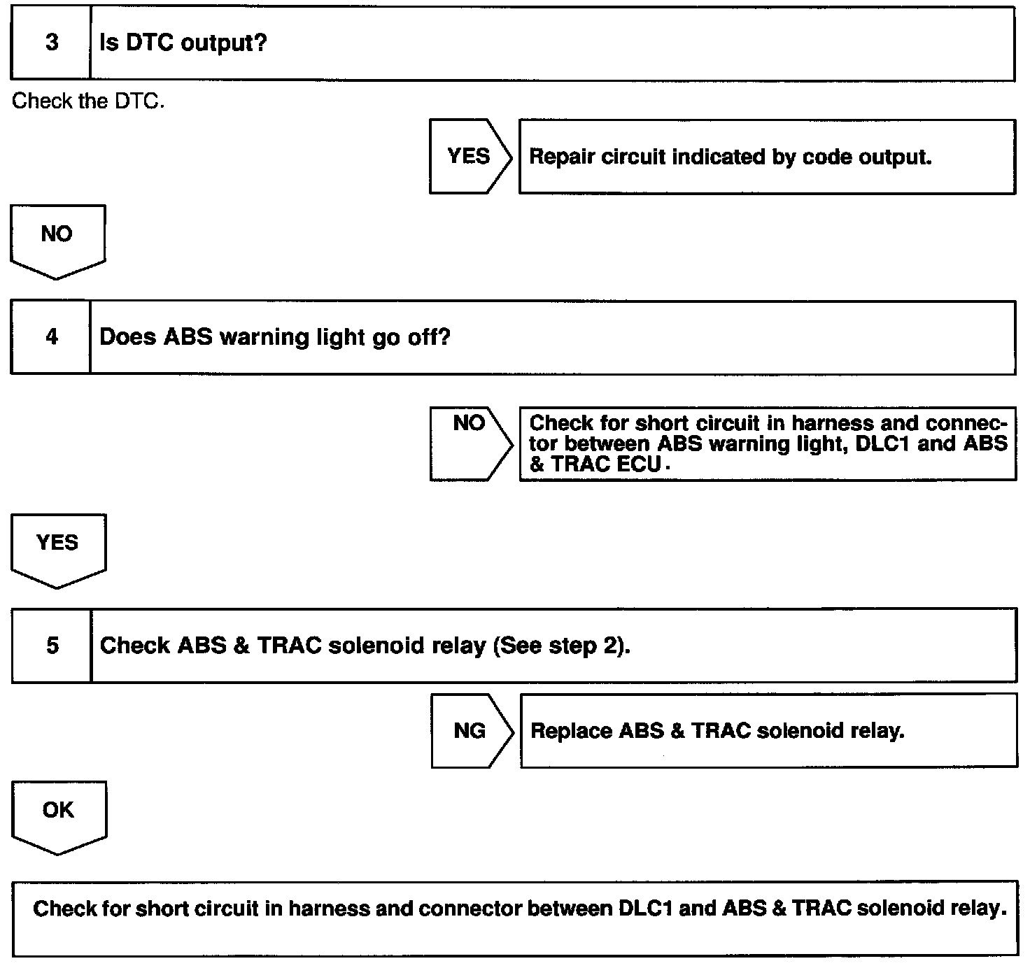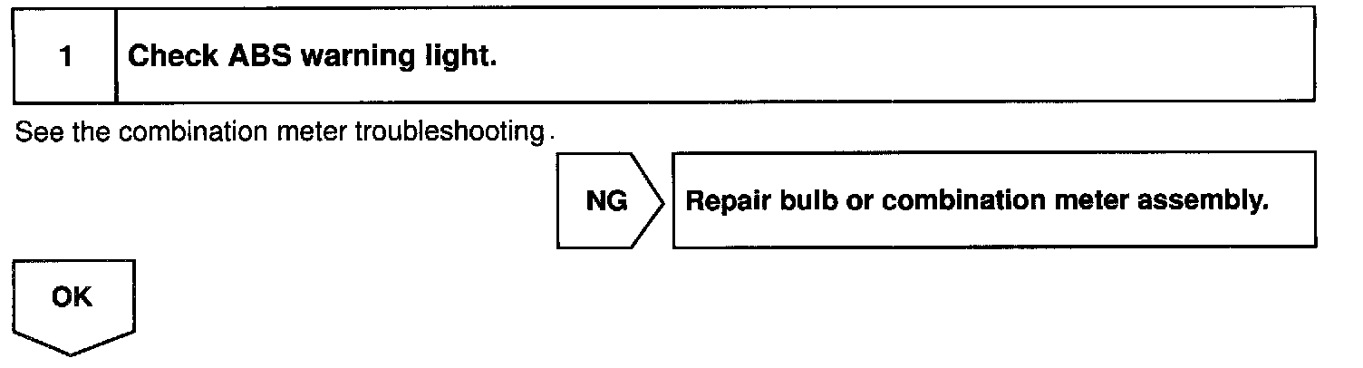 If the ECU has detected a trouble, it lights the ABS warning light and prohibits the ABS control at the same time. At this time, the ECU records a DTC in the memory.