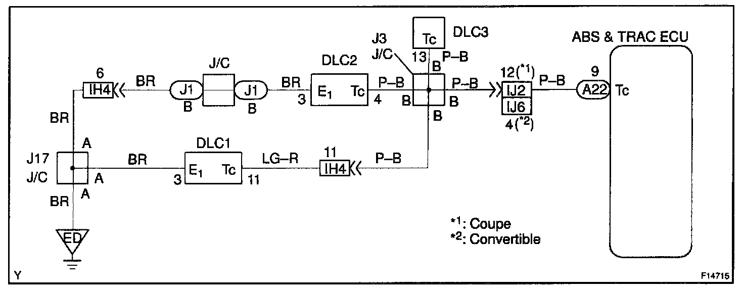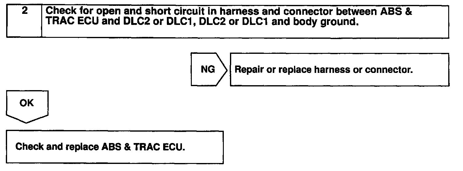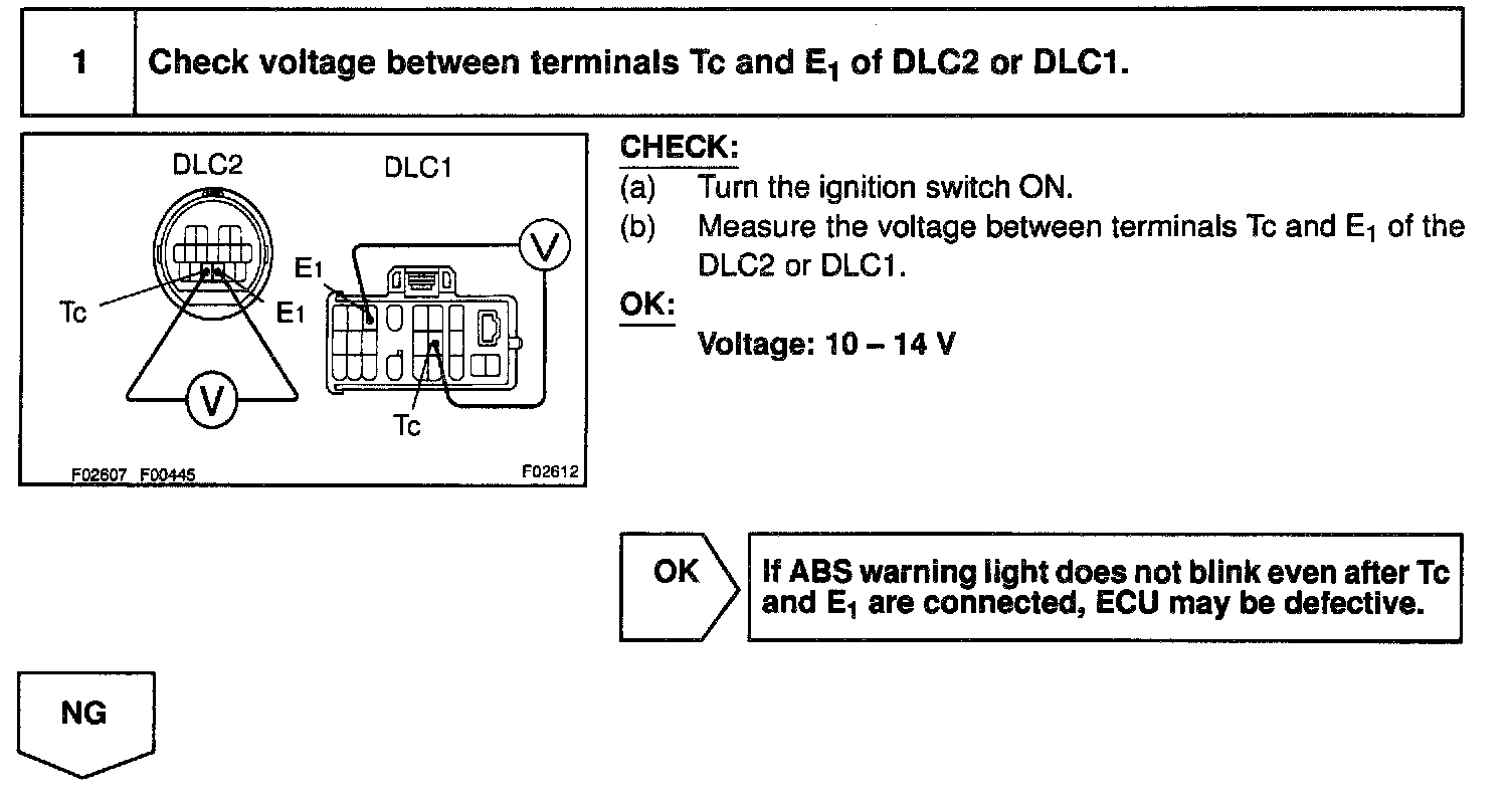 Connecting terminals Tc and E1 of the DLC1 or DLC2 causes the ECU to display the DTC by blinking the ABS warning light and the TRAC OFF indicator light.