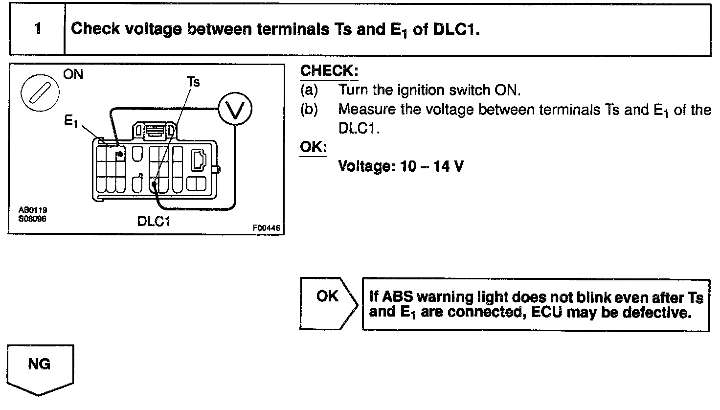 Connect terminals Ts and E1 of the DLC1 in the engine compartment starts the check.