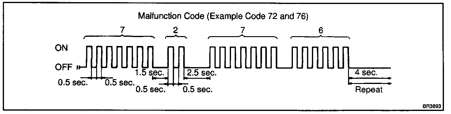 If every sensor is normal, the normal code is output (A cycle of 0.25 seconds ON and 0.25 seconds OFF is repeated).